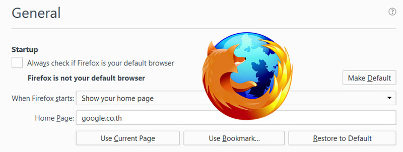 สำหรับคนที่กำลังใช้ Firefox และอยากจะตั้งหน้าแรกเป็น Google หรือ หน้าอื่นๆที่เราต้องการ เราสามารถทำการตั้งหน้าแรกของ Firefox ให้ทำการเปิดมาเจอหน้า website นี้ทุกครั้งที่ทำการเปิด Firefox ขึ้นมา โดยส่วนใหญ่คนนิยมตั้งหน้าแรกเป็น Google ในการใช้งานของ Firefox